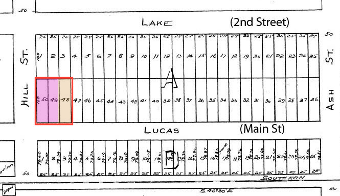 Beidler also buys the adjacent vacant lot (Lot 48) to the south, and the Beidler 75 ft x 100 ft property consists of Lots 48, 49, and 50 of Block A of the 1893 Santa Monica Tract.