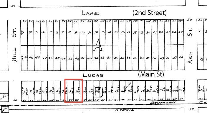 The City building permit lists Annie Dierdorf2 as owner, with J.L. Schimmer, Jr. as builder.3 The 50-ft x 30-ft plan $2,000 building is on a 50-ft x 70-ft lot, and there is a spacious 50-ft x 40-ft outdoor area at the rear.