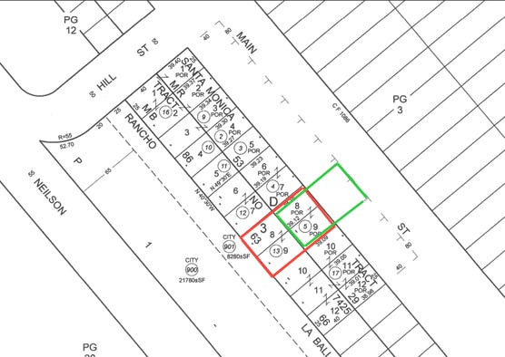 The 2720 Main St property is Lot 8 & 9, Block D, of the Santa Monica Tract.