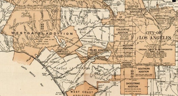 State law only allows the annexation of contiguous cities. By 1917, with the Westgate annexation of June 14, 1916 (and the Sawtelle annexation of May 4, 1917), Santa Monica is contiguous with the City of Los Angeles.